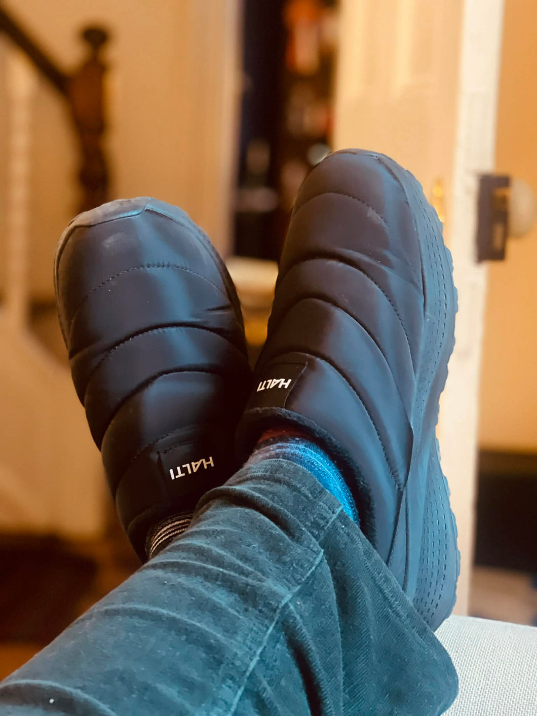 Originally designed as a rest slipper after a days skiing, we have found that these are excellent on cold floors and for keeping your feet warm and dry when you are in and out all the time. Highly recommended for dog owners as well as for campervan, motorhome and caravan use.
