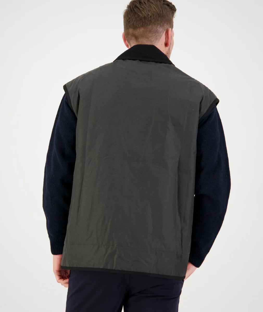 Crafted with a premium 100% waxed cotton outer, the Foxton Oilskin Vest offers excellent protection against the elements.