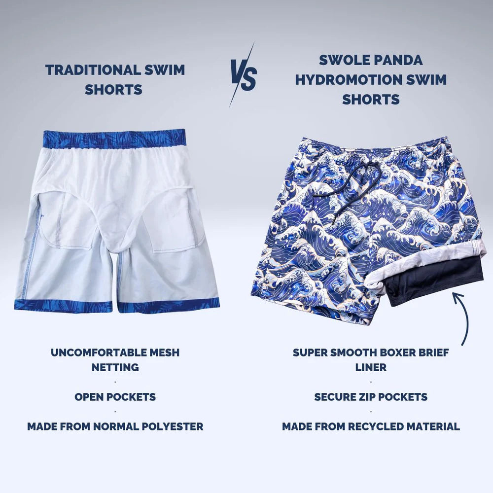 Swole Panda HydroMotion Swim Shorts - Waves (NEW)